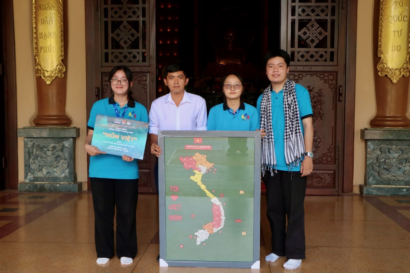 Trong khuôn khổ Chặng 3 “Theo bước quân ca” thuộc Chuỗi hoạt động giáo dục nâng cao nhận thức và hiểu biết về chính trị, lịch sử dân tộc hào hùng, giáo dục truyền thống cách mạng, lan tỏa tinh thần yêu nước “CÁNH ÉN SỬ VIỆT” thực hiện ngày 20/4/2025, Đoàn – Hội Khoa Kế toán đã chính thức trao tặng công trình thanh niên “Hồn Việt” đến Ban quản lý Di tích lịch sử Địa đạo Củ Chi – một biểu tượng thiêng liêng trong hành trình giữ nước và dựng nước của dân tộc Việt Nam.